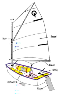 Der Optimist ist das Anfängerboot für Kinder schlechthin. Es ist sehr robust und liegt stabil auf dem Wasser.